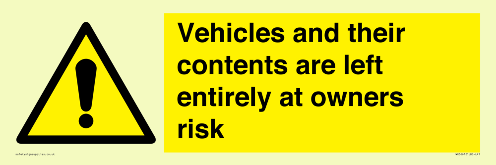 Sign Text: Vehicles and their contents are left entirely at owners risk