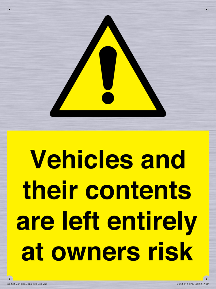 Sign Text: Vehicles and their contents are left entirely at owners risk