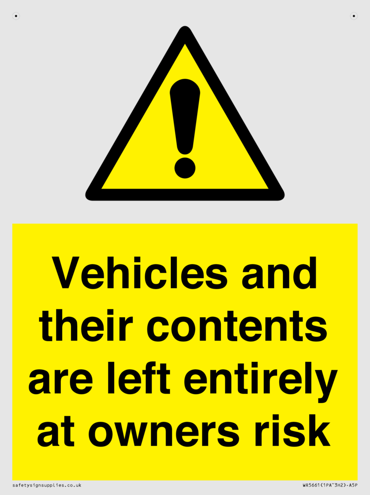 Sign Text: Vehicles and their contents are left entirely at owners risk