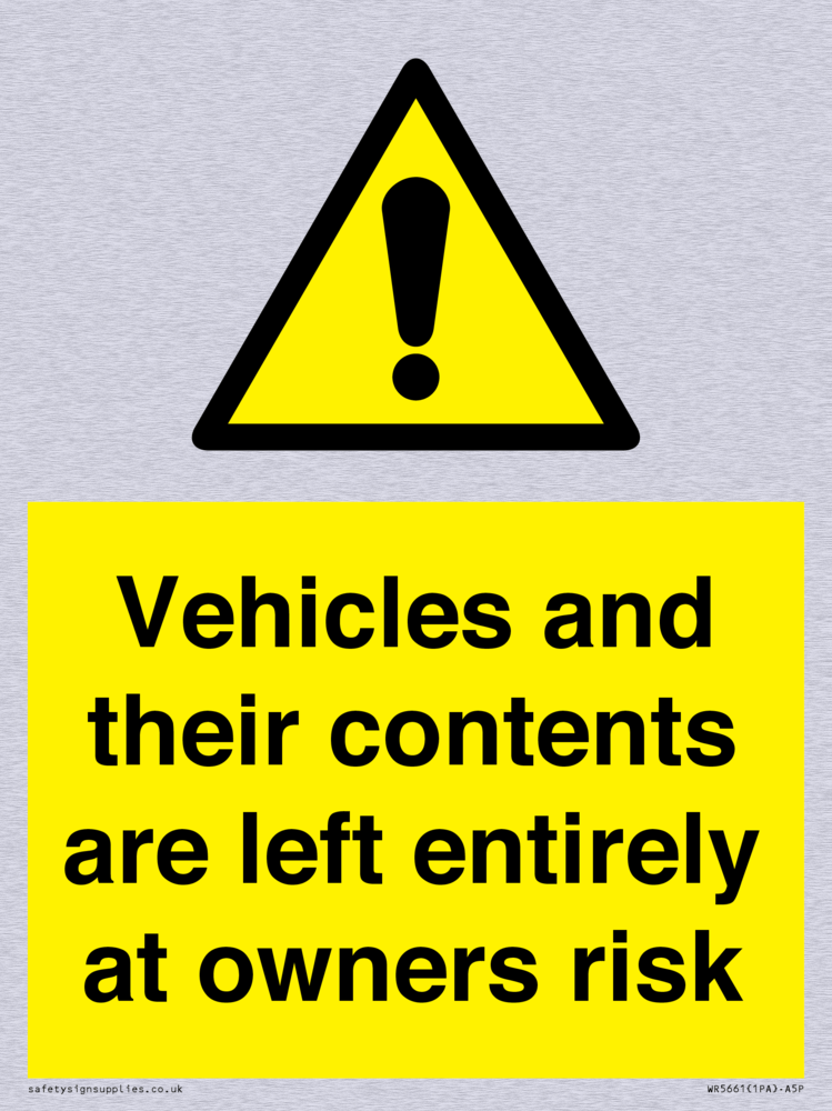 Sign Text: Vehicles and their contents are left entirely at owners risk