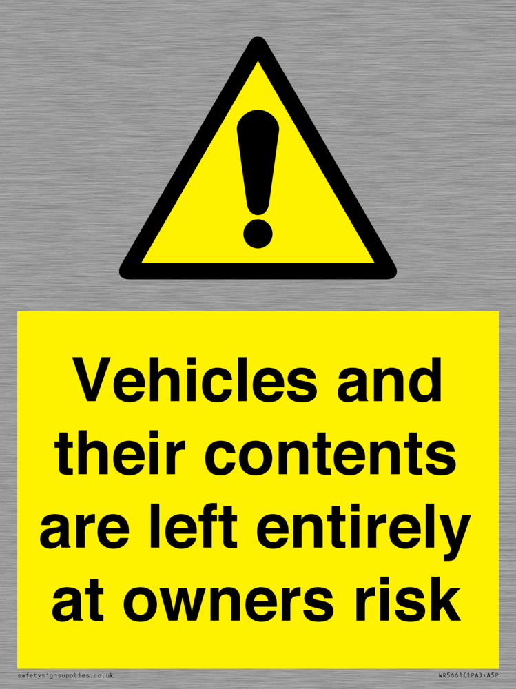 Sign Text: Vehicles and their contents are left entirely at owners risk