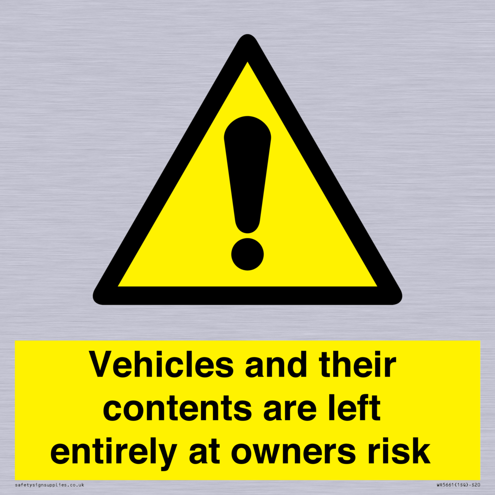 Sign Text: Vehicles and their contents are left entirely at owners risk