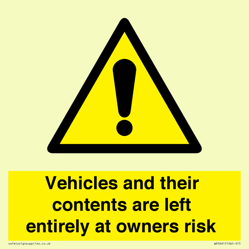 Sign Text: Vehicles and their contents are left entirely at owners risk