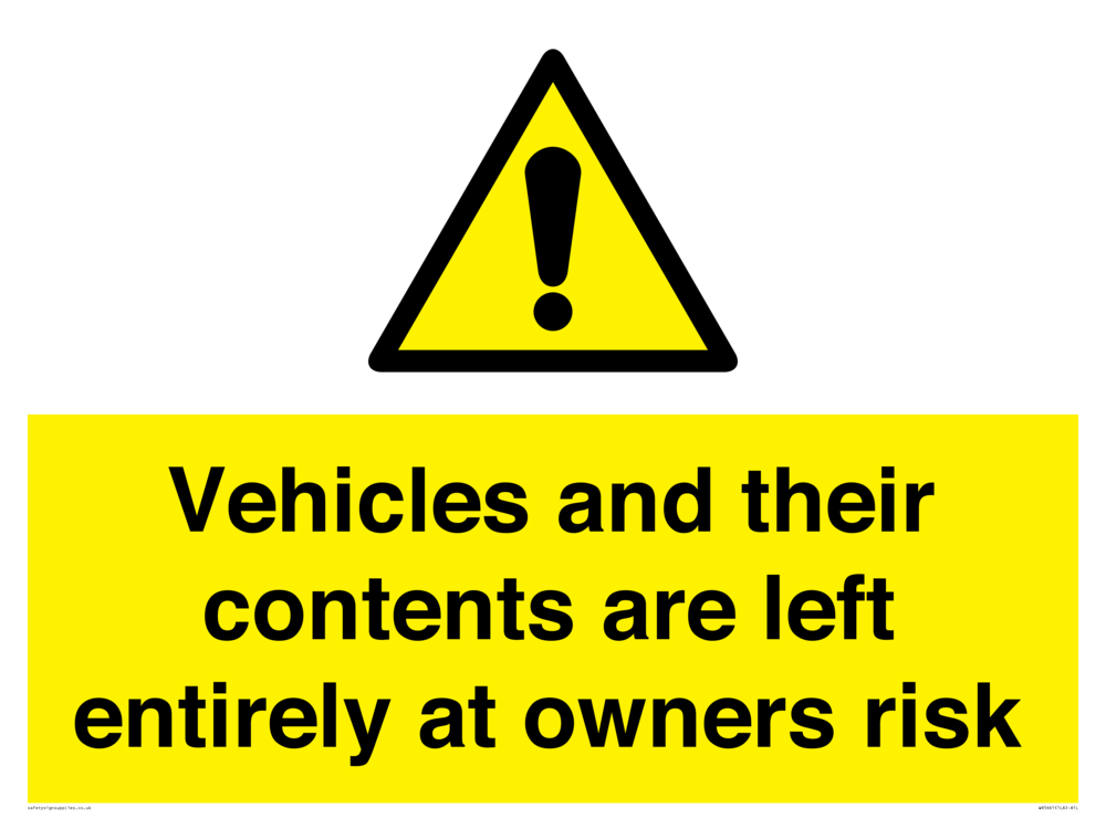 Sign Text: Vehicles and their contents are left entirely at owners risk