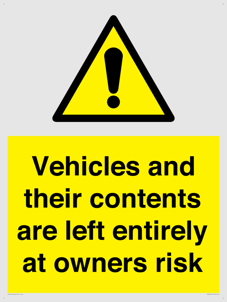 Sign Text: Vehicles and their contents are left entirely at owners risk