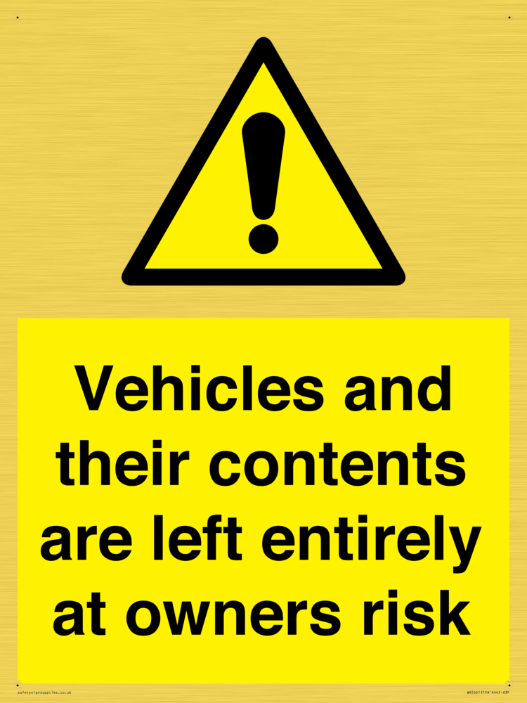 Sign Text: Vehicles and their contents are left entirely at owners risk