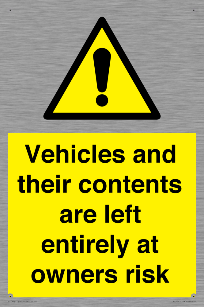 Sign Text: Vehicles and their contents are left entirely at owners risk