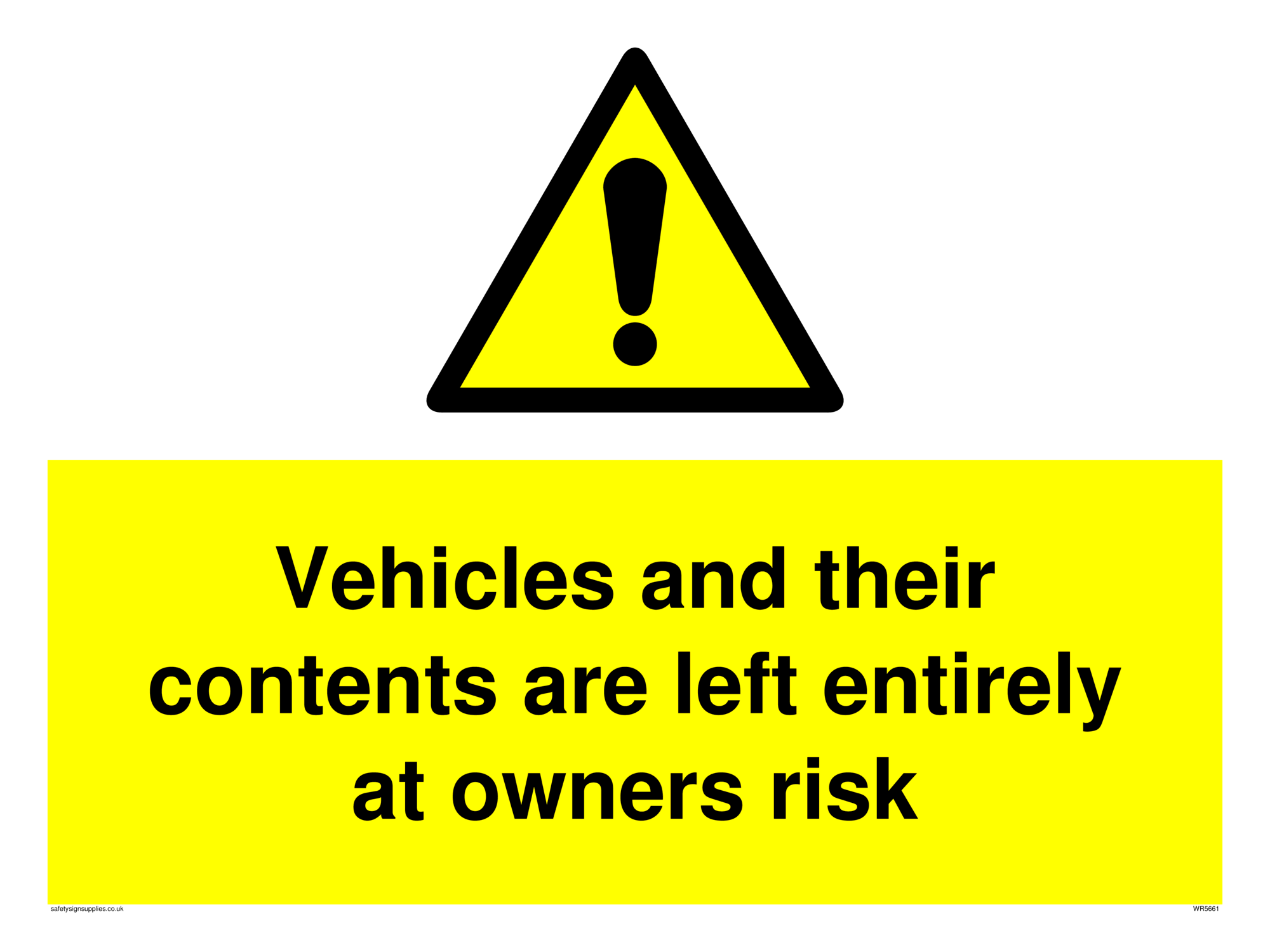 This sign contains a warning Exclamation Symbol - black exclamation mark on yellow triangle background.