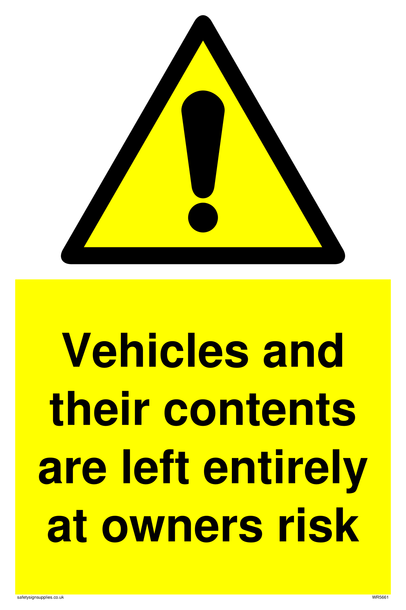 This sign contains a warning Exclamation Symbol - black exclamation mark on yellow triangle background.