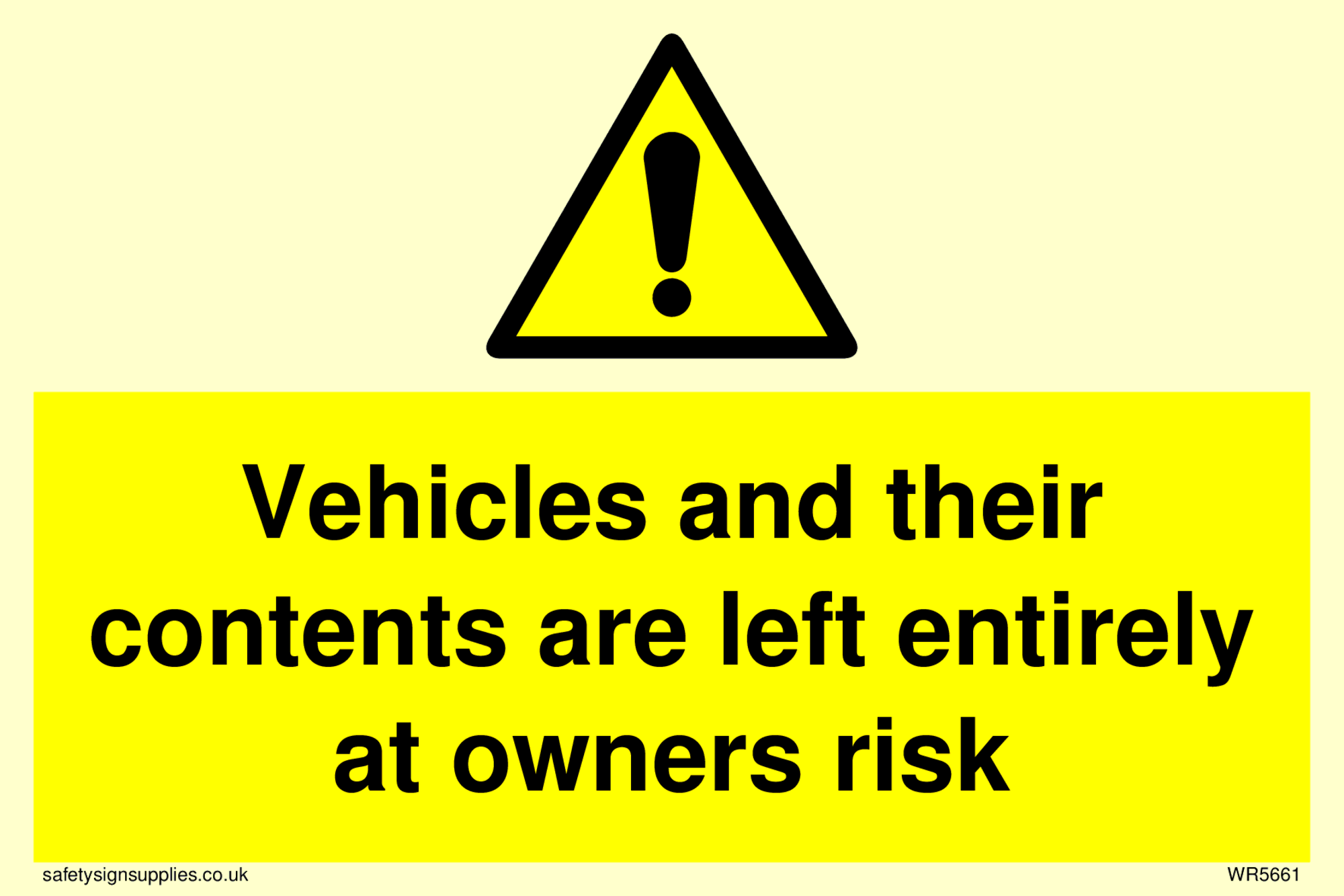 This sign contains a warning Exclamation Symbol - black exclamation mark on yellow triangle background.