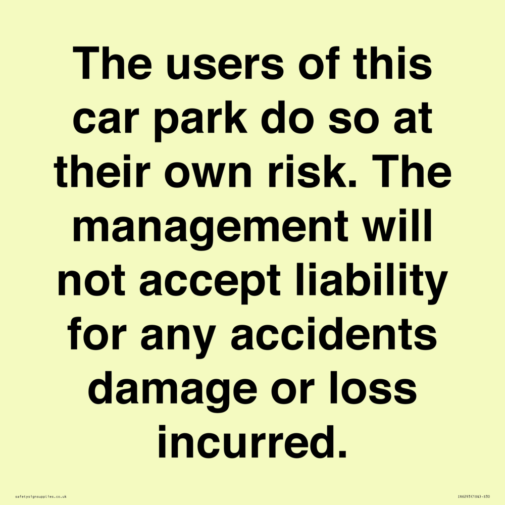 The users of this car park do so at their own risk. the management will not accept liability for any accidents damage or loss incurred. Sign