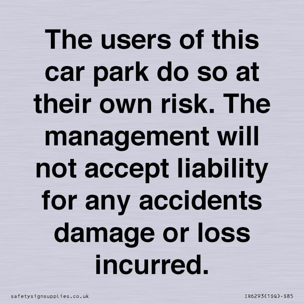 The users of this car park do so at their own risk. the management will not accept liability for any accidents damage or loss incurred. Sign