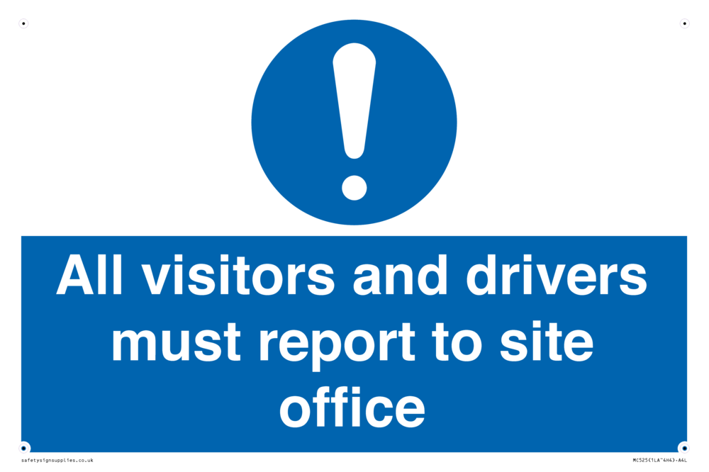 Sign Text: All visitors and drivers must report to site office