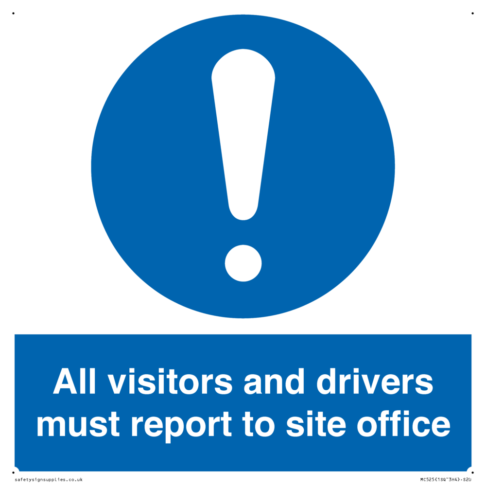 Sign Text: All visitors and drivers must report to site office