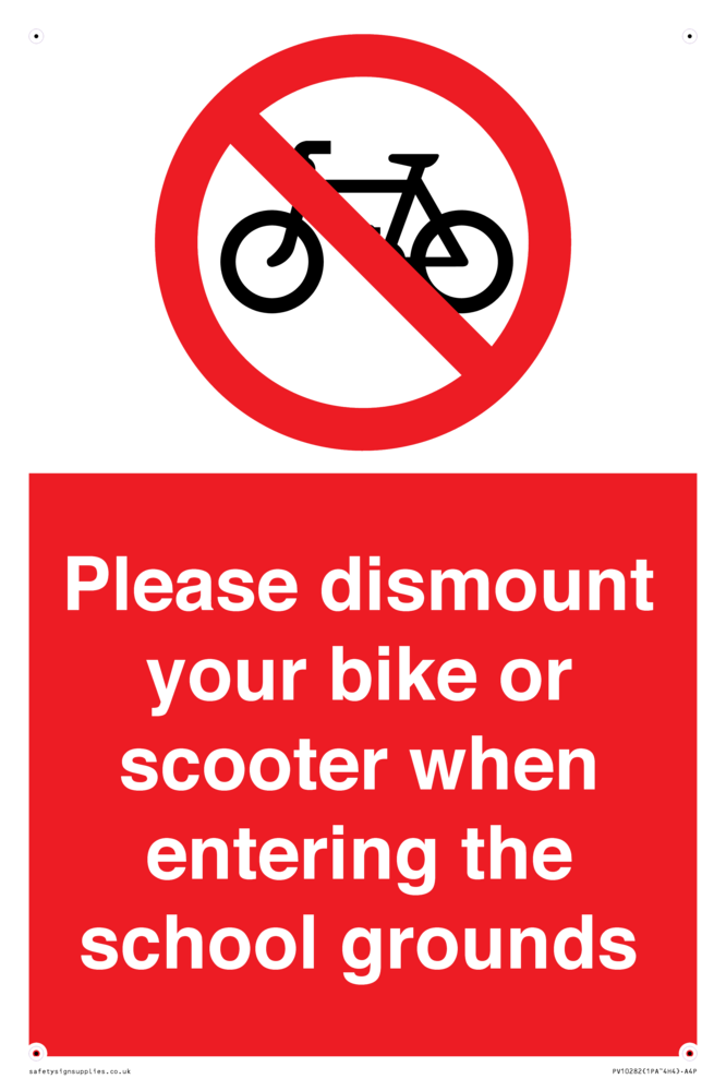 Sign Text: Please Dismount Your Bike Or Scooter Within School Grounds