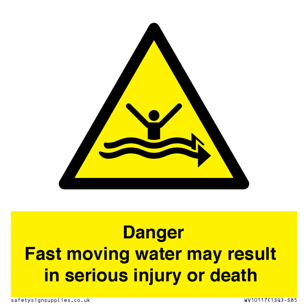 Sign Text: Danger Fast moving water may result in serious injury or death