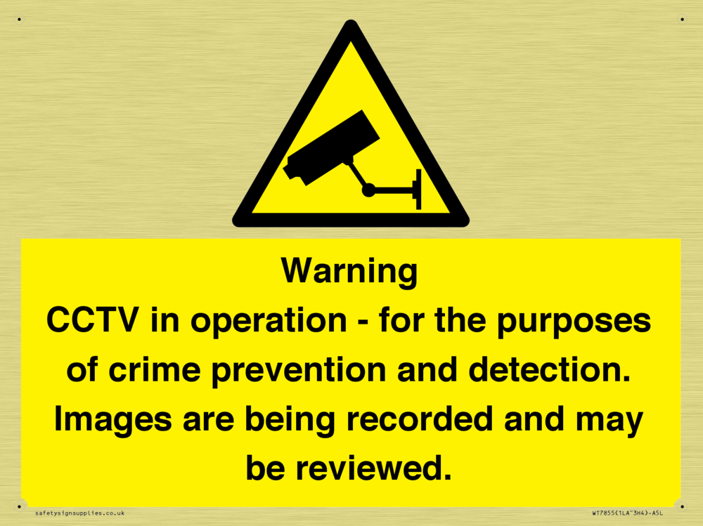 Sign Text: Warning CCTV in operation - for the purposes of crime prevention and detection. Images are being recorded and may be reviewed.