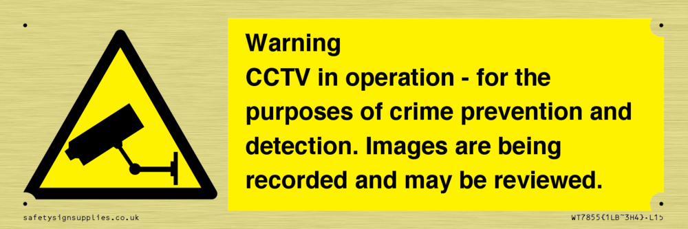 Sign Text: Warning CCTV in operation - for the purposes of crime prevention and detection. Images are being recorded and may be reviewed.