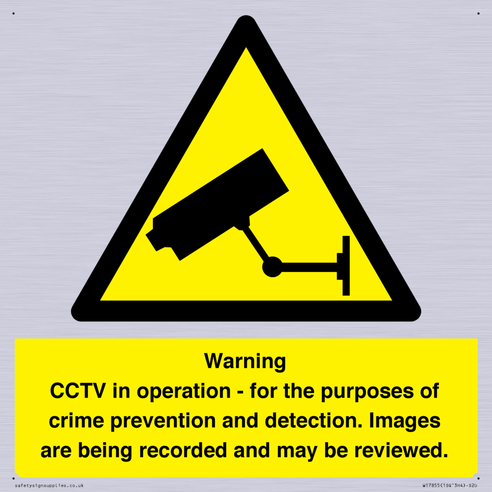 Sign Text: Warning CCTV in operation - for the purposes of crime prevention and detection. Images are being recorded and may be reviewed.