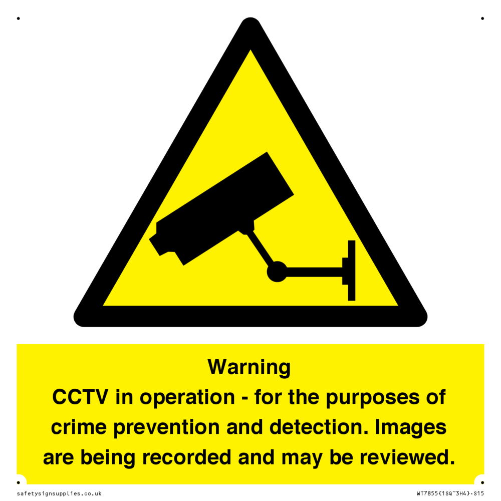 Sign Text: Warning CCTV in operation - for the purposes of crime prevention and detection. Images are being recorded and may be reviewed.