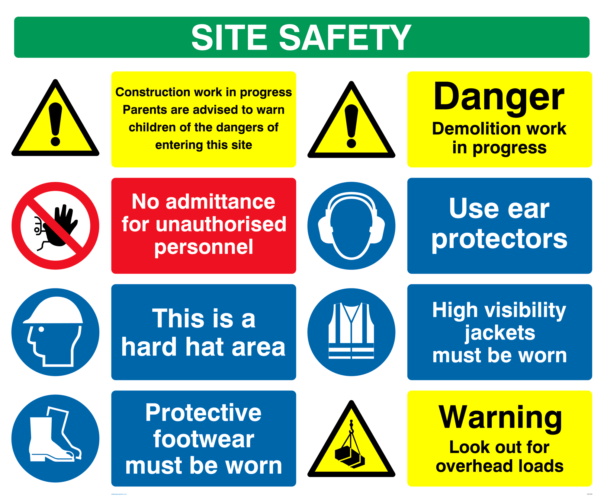Site safety boards are used on construction sites and building sites, often at the entrance to combine many safety messages into one convinient sign. This sign is extra large. Signs in this range are from our maximum choice range. Giving you the most choice of signs available in the UK. Signs in this range are the most popular choices. Signs in this range are from our standard range.