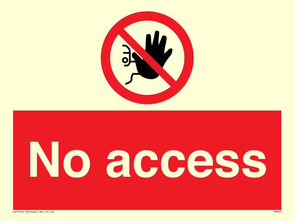 This sign contains a no access symbol - person in black with red circle crossed through.