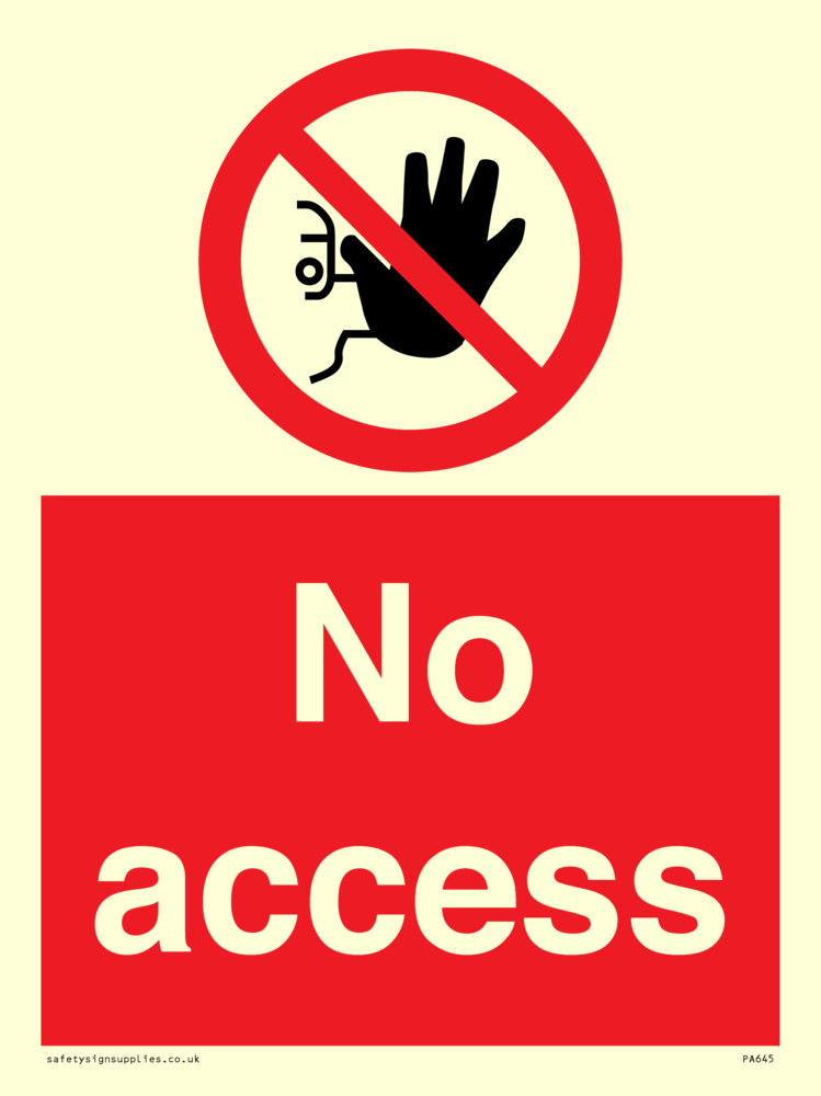 This sign contains a no access symbol - person in black with red circle crossed through.