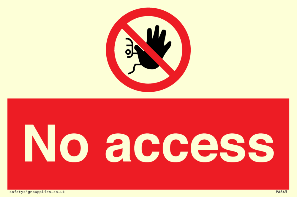 This sign contains a no access symbol - person in black with red circle crossed through.