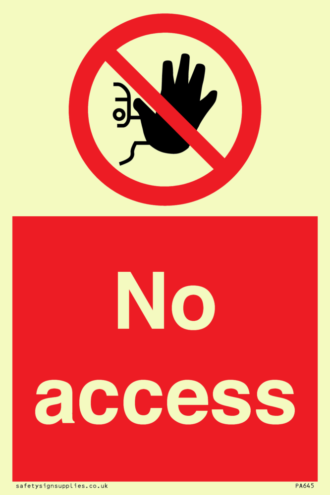 This sign contains a no access symbol - person in black with red circle crossed through.