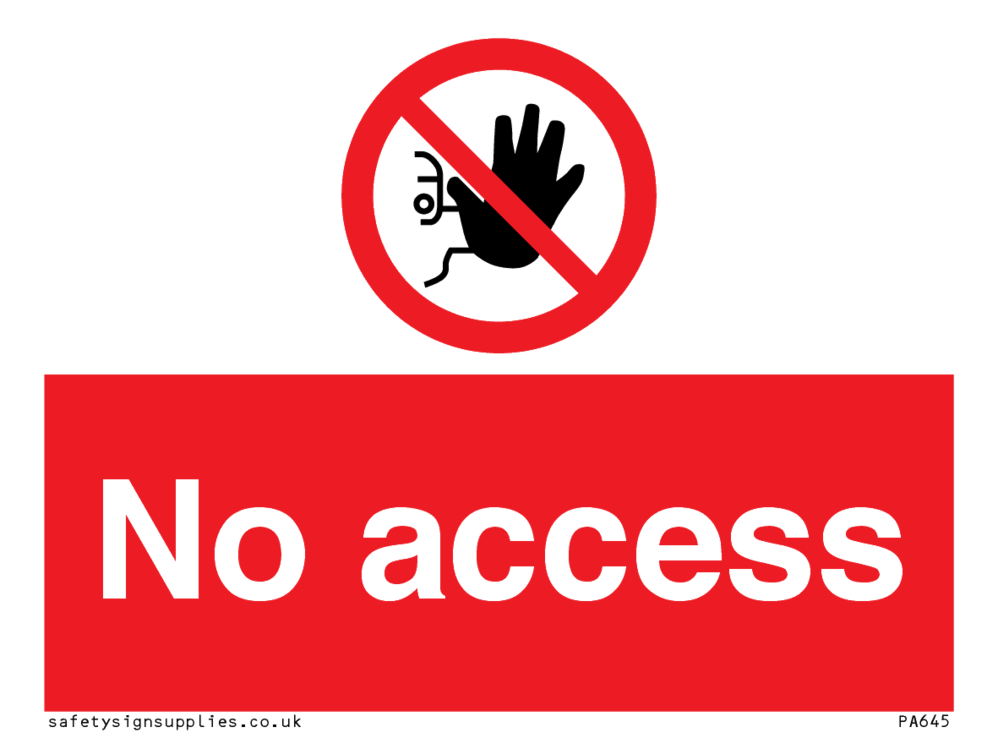 This sign contains a no access symbol - person in black with red circle crossed through.