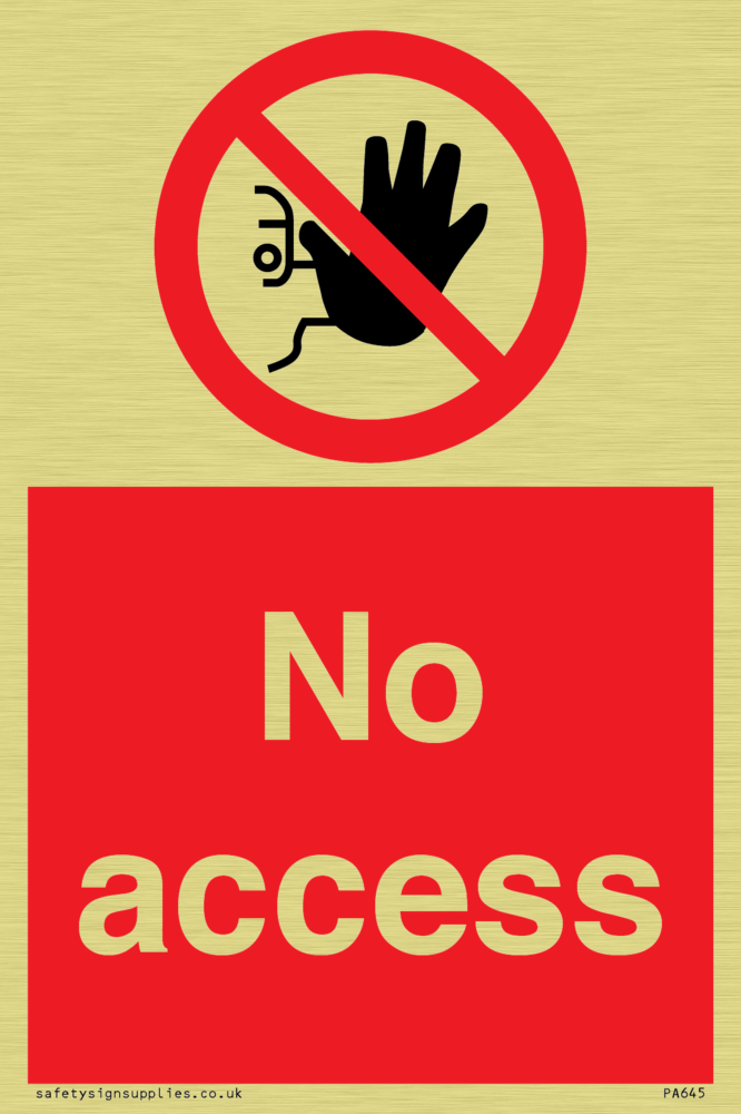 This sign contains a no access symbol - person in black with red circle crossed through.