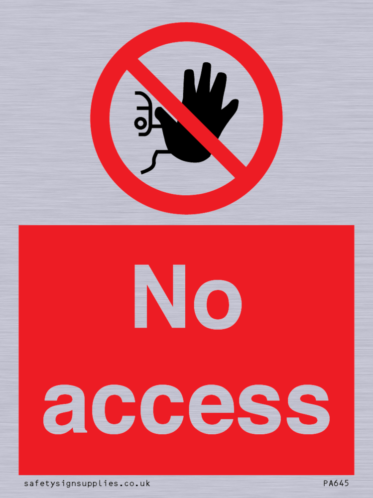 This sign contains a no access symbol - person in black with red circle crossed through.