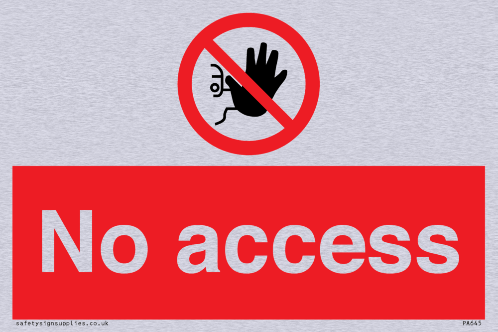 This sign contains a no access symbol - person in black with red circle crossed through.