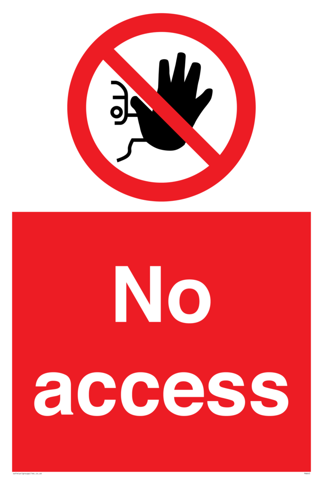 This sign contains a no access symbol - person in black with red circle crossed through.