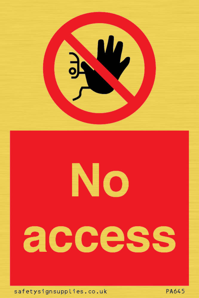 This sign contains a no access symbol - person in black with red circle crossed through.