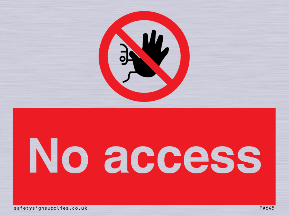 This sign contains a no access symbol - person in black with red circle crossed through.