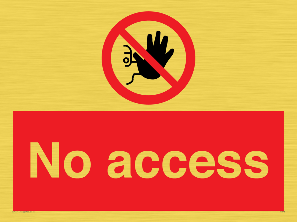 This sign contains a no access symbol - person in black with red circle crossed through.