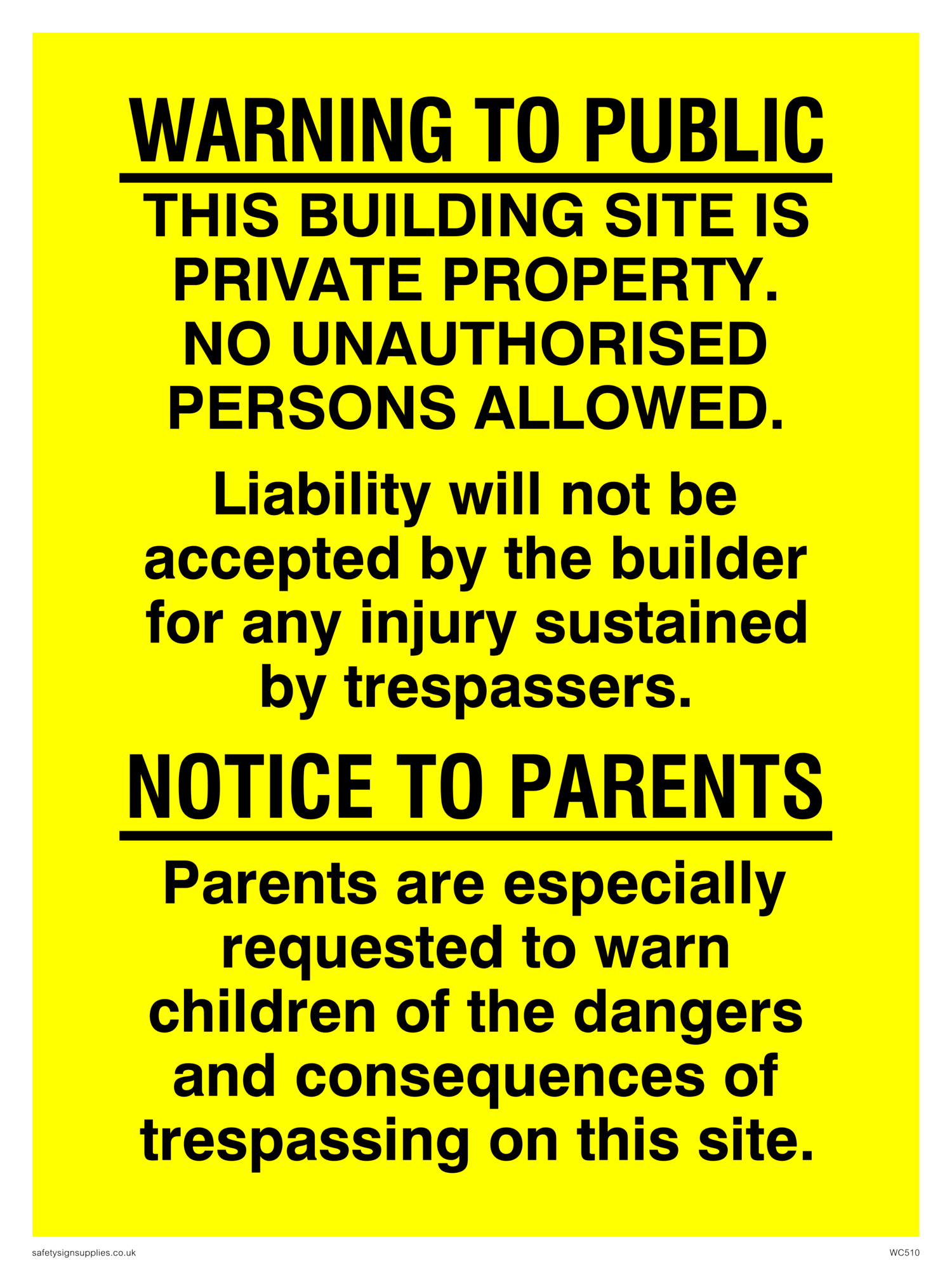 Construction Signs are used on building and construction sites to show safety policy requirements or hazards. This sign is extra large. This sign is approximately equivalent to A1 paper size.