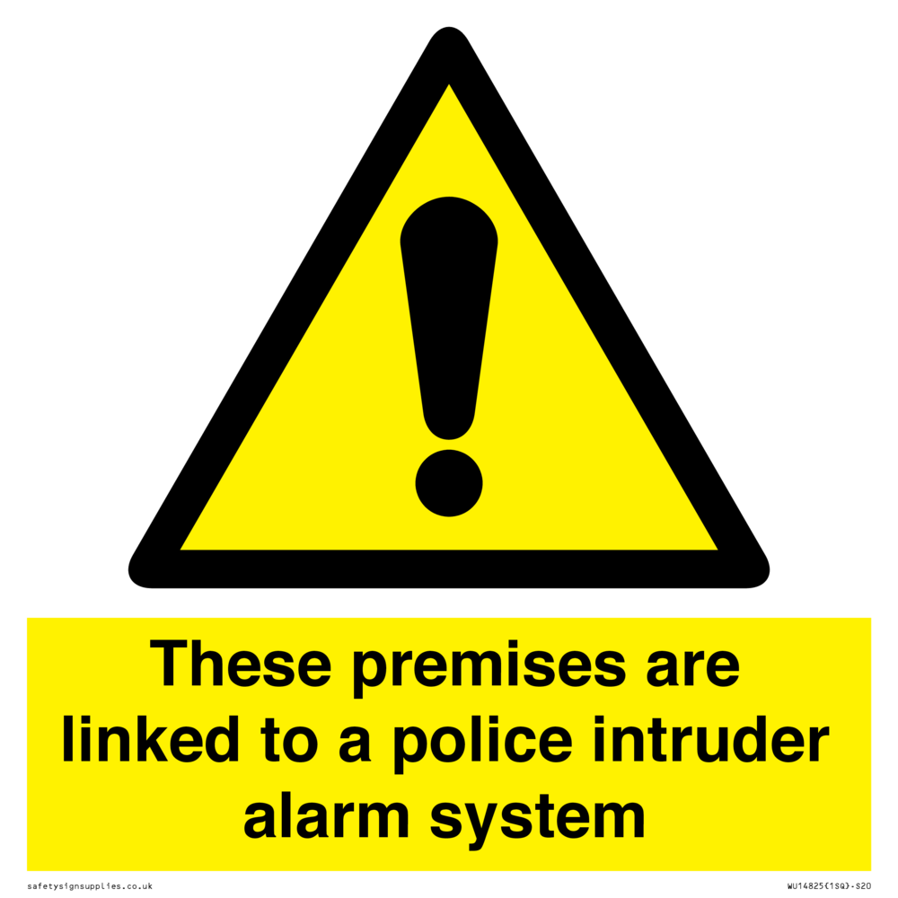 Sign Text: These premises are linked to a police intruder alarm system