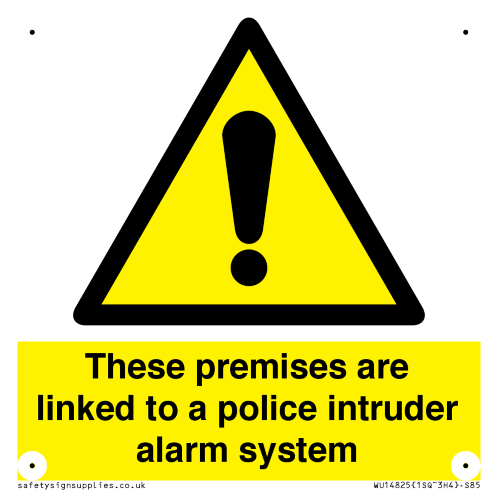 Sign Text: These premises are linked to a police intruder alarm system