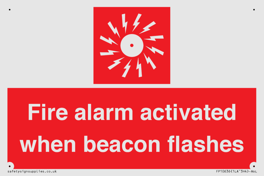 Sign Text: Fire alarm activated when beacon flashes