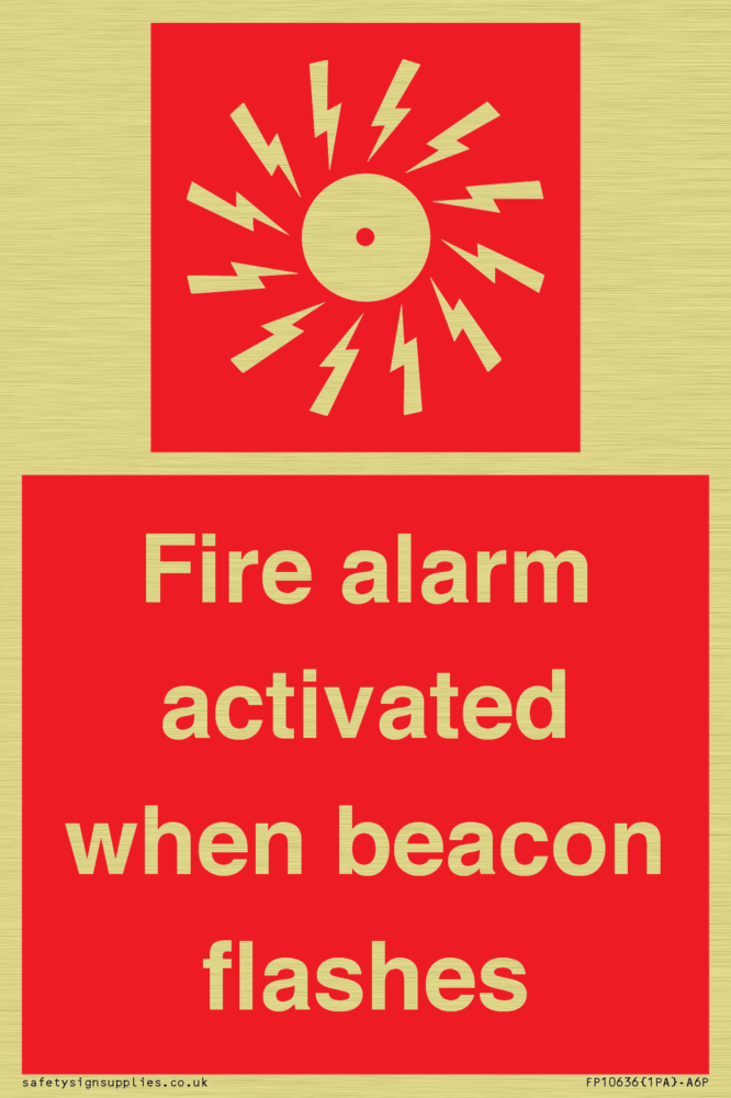 Sign Text: Fire alarm activated when beacon flashes