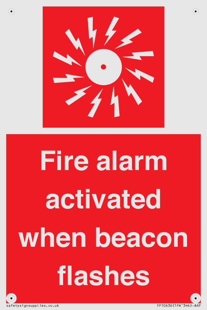 Sign Text: Fire alarm activated when beacon flashes