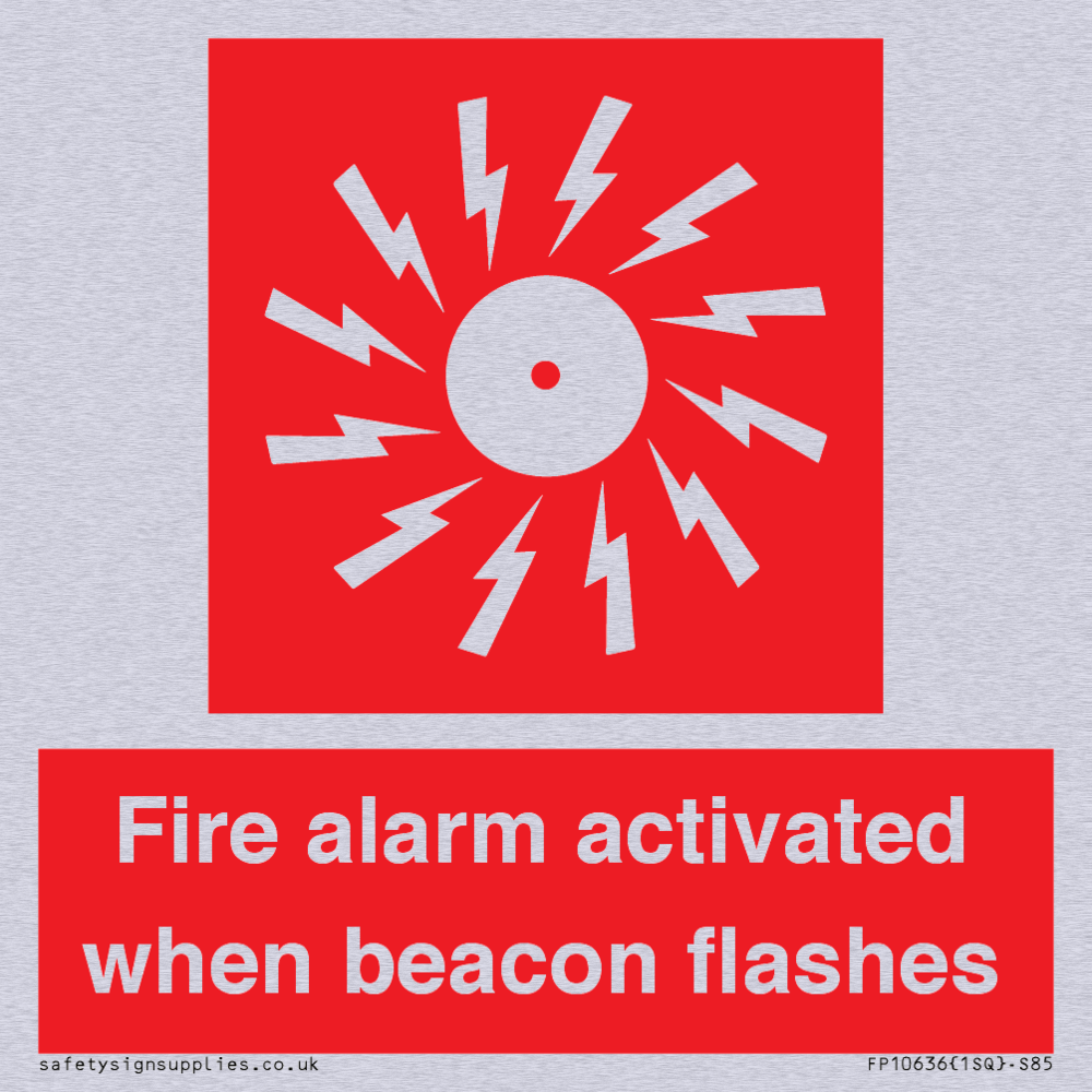 Sign Text: Fire alarm activated when beacon flashes