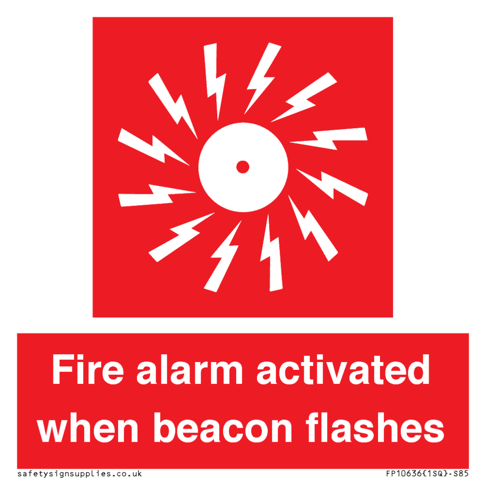 Sign Text: Fire alarm activated when beacon flashes