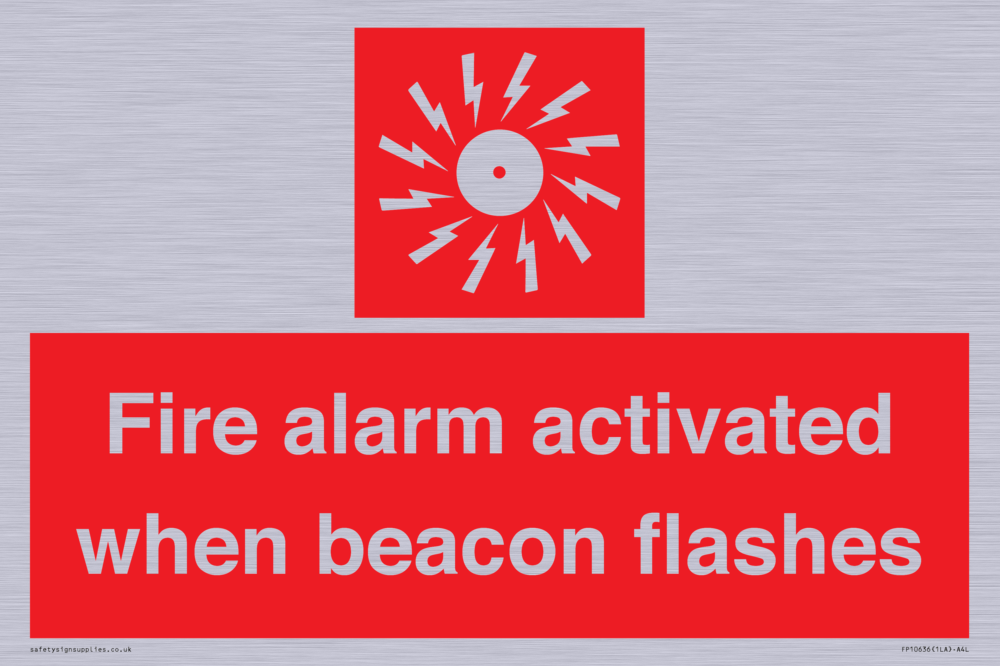 Sign Text: Fire alarm activated when beacon flashes