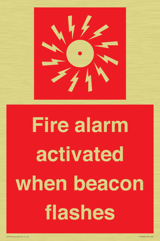Sign Text: Fire alarm activated when beacon flashes