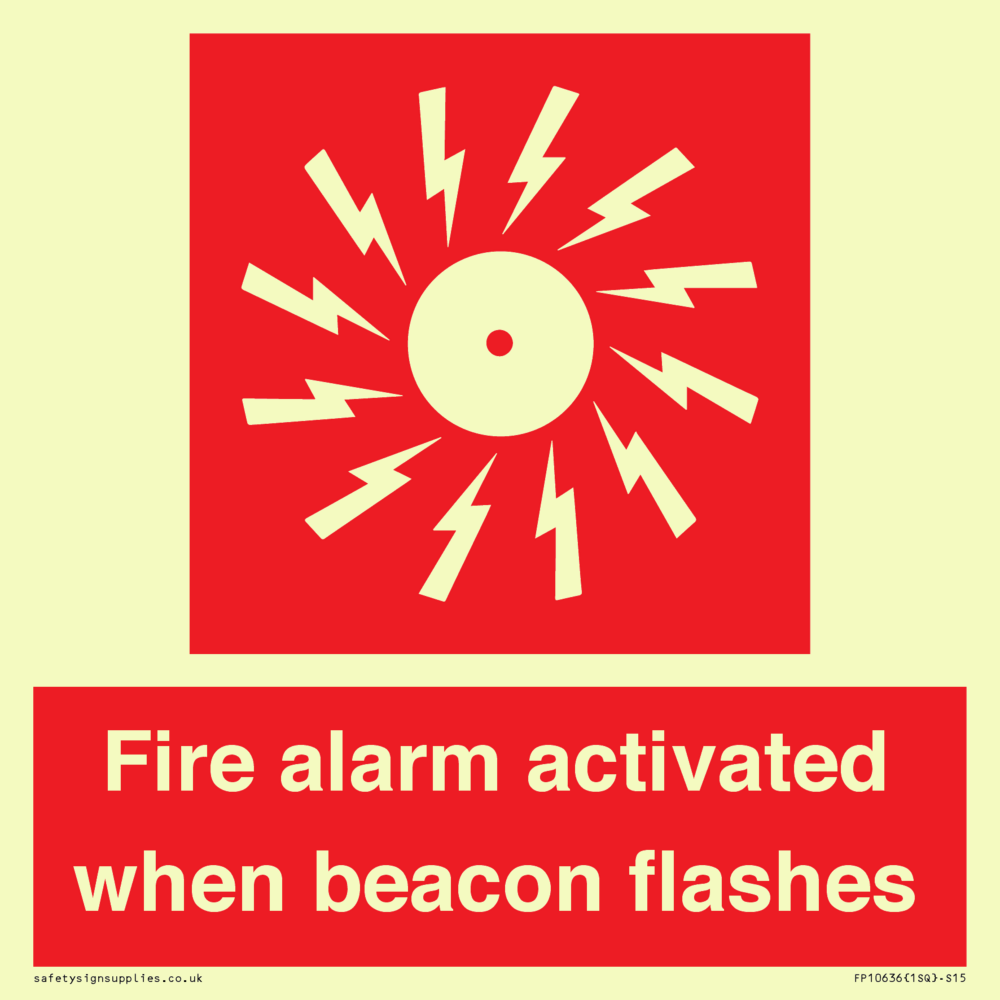 Sign Text: Fire alarm activated when beacon flashes
