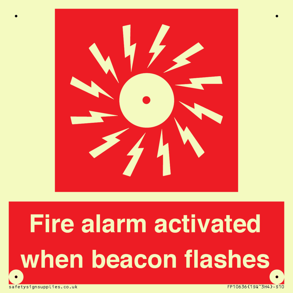 Sign Text: Fire alarm activated when beacon flashes