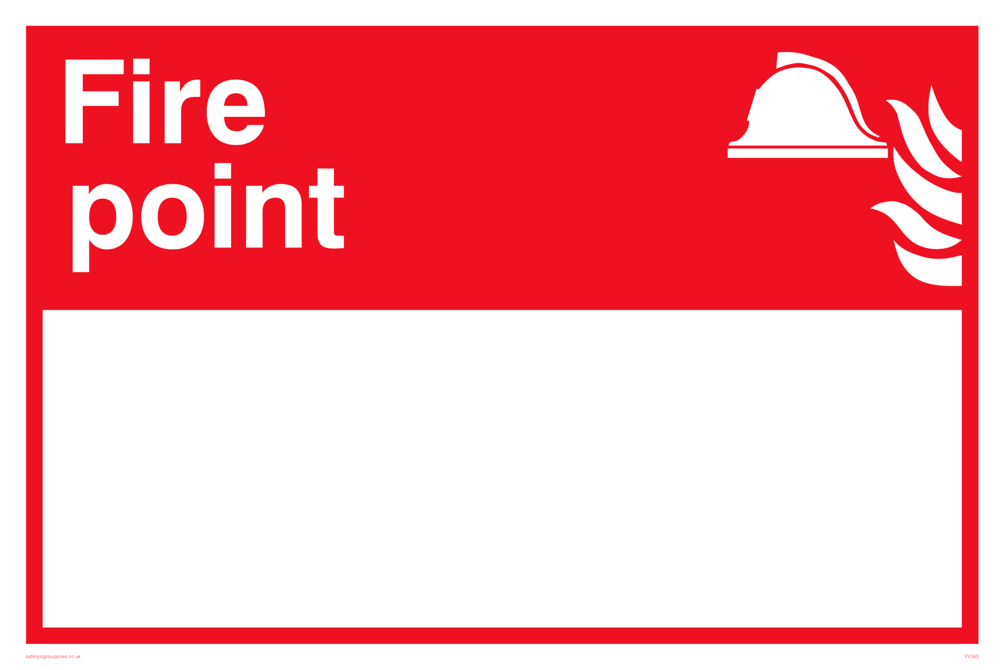 This sign contains a fire point symbol - firemans helmet in white on red background.